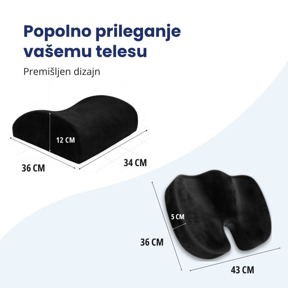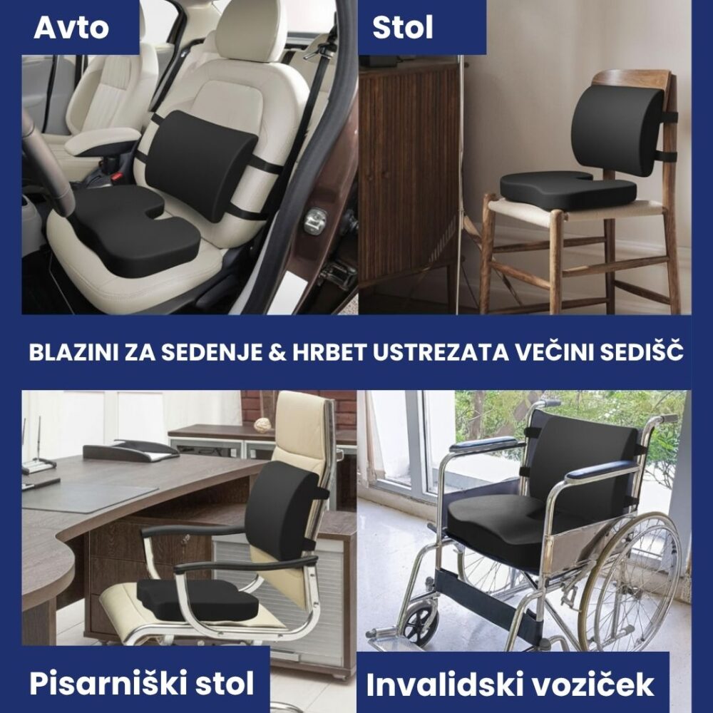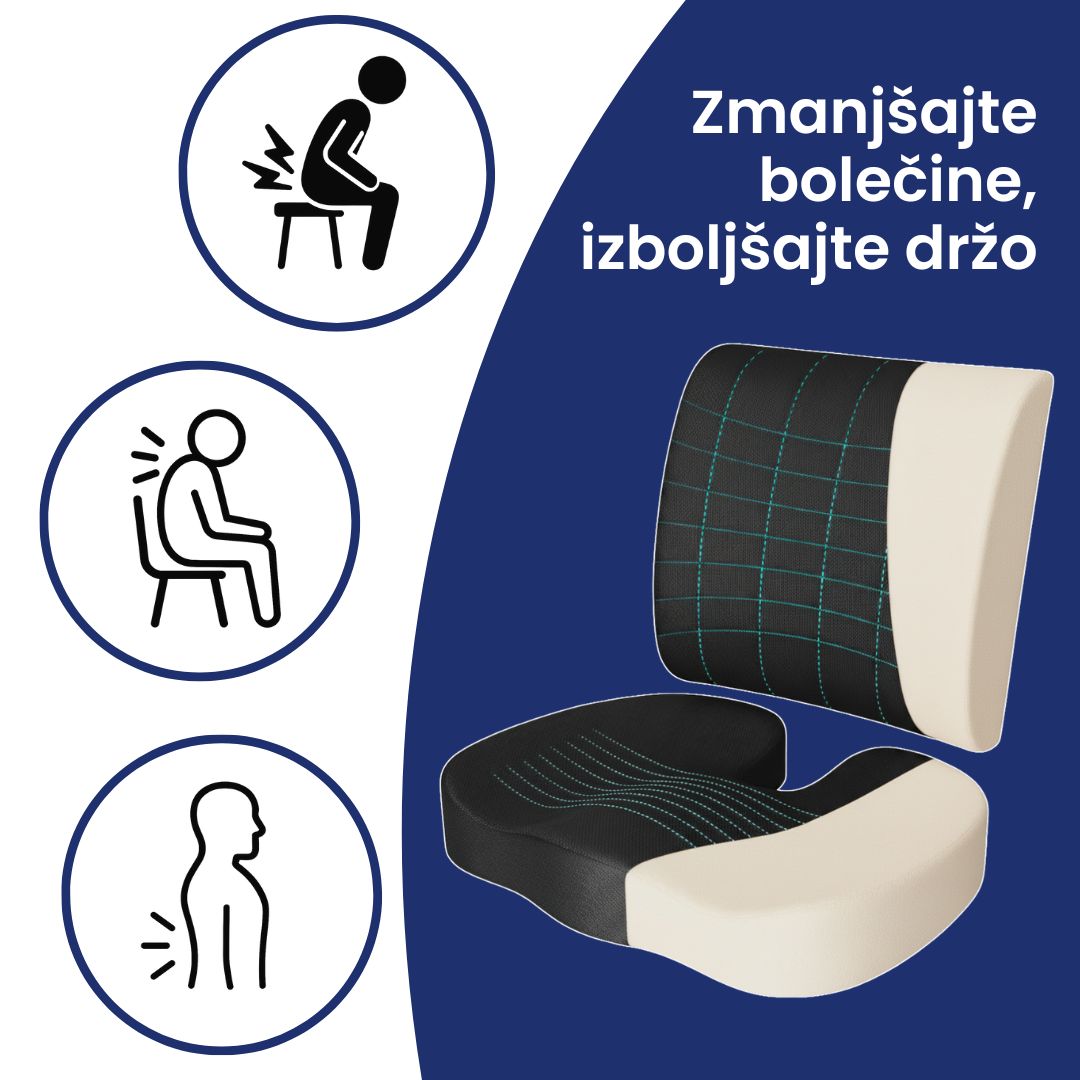 Set učinkovito lajša pritisk in bolečine, ki nastanejo zaradi dolgotrajnega sedenja. Pomaga pri: