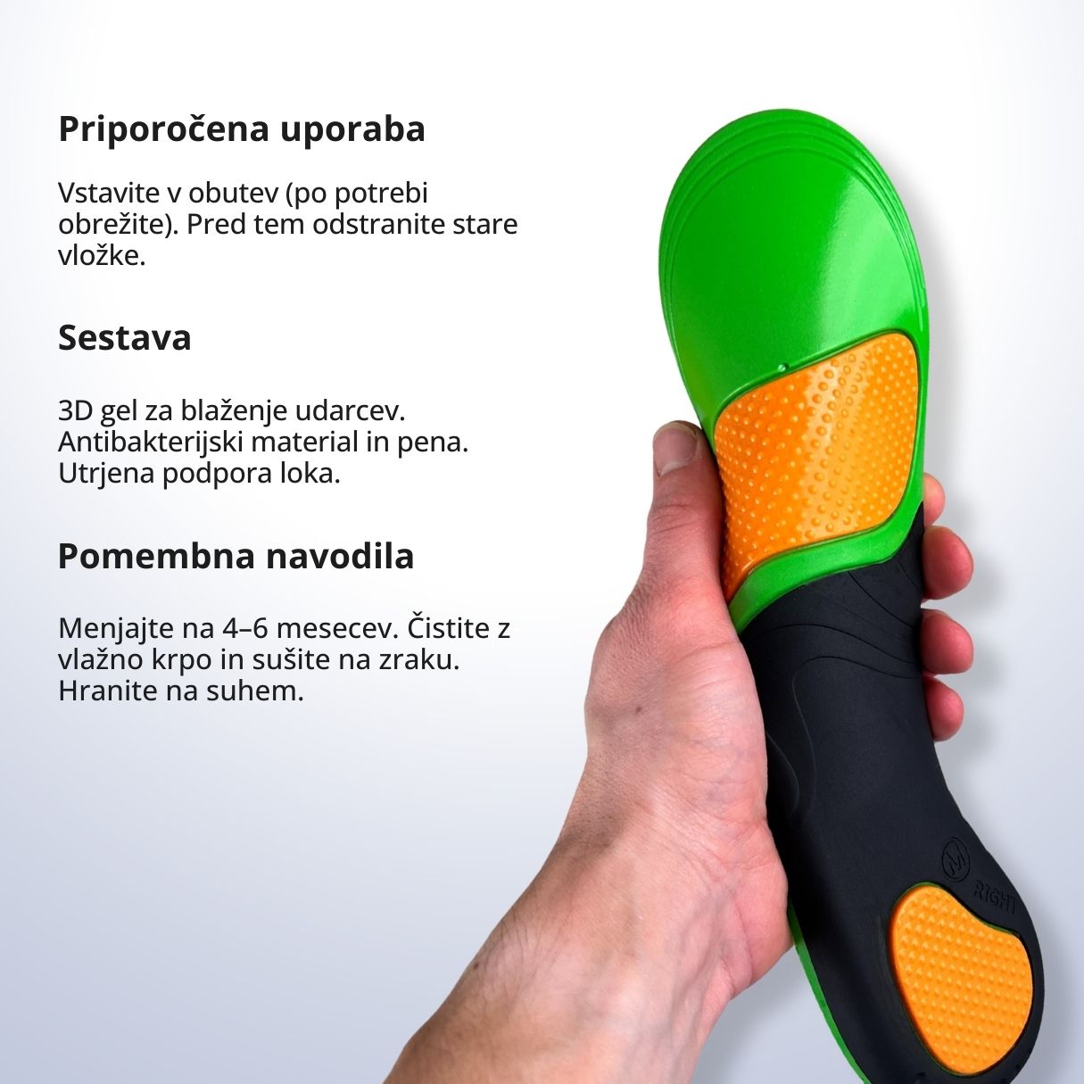 Odličen izdelek za vsakodnevno rabo. Zaradi uporabe teh vložkov me podplati ne bolijo več tako pogosto.