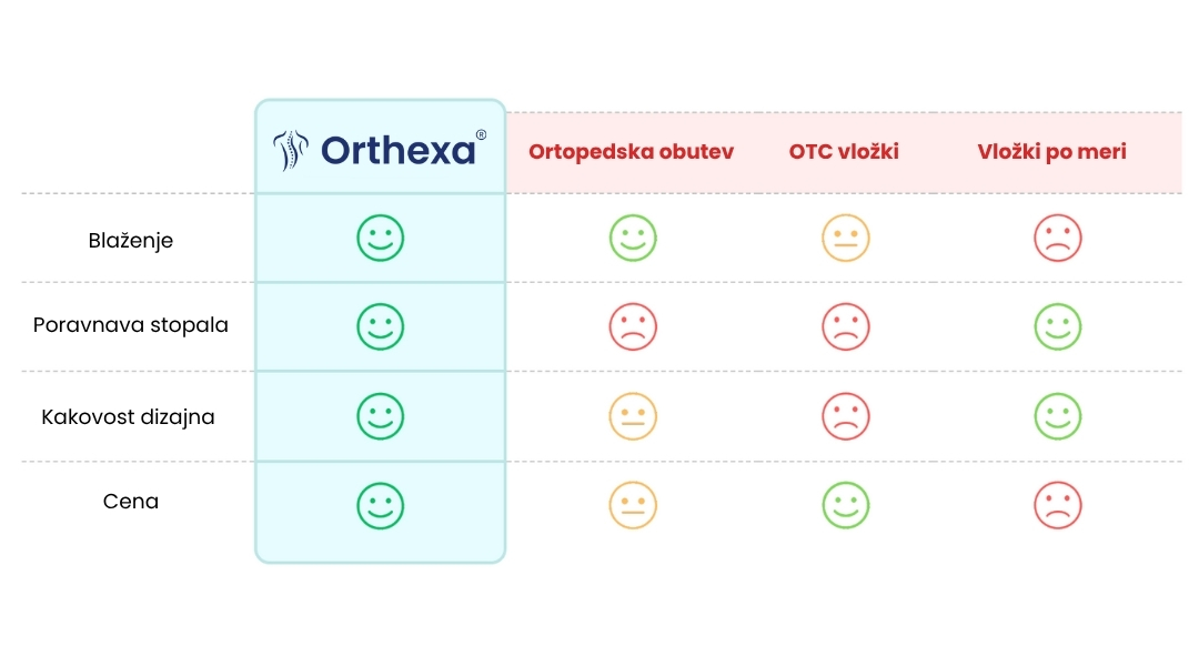 Vložki ORTHEXA to odpravijo pri samem vzroku. Njihov trojni podporni sistem dvigne stopalni lok, blaži udarce in stabilizira peto – zato občutiš resnično olajšanje pri vsakem koraku, že od prvega dne.
